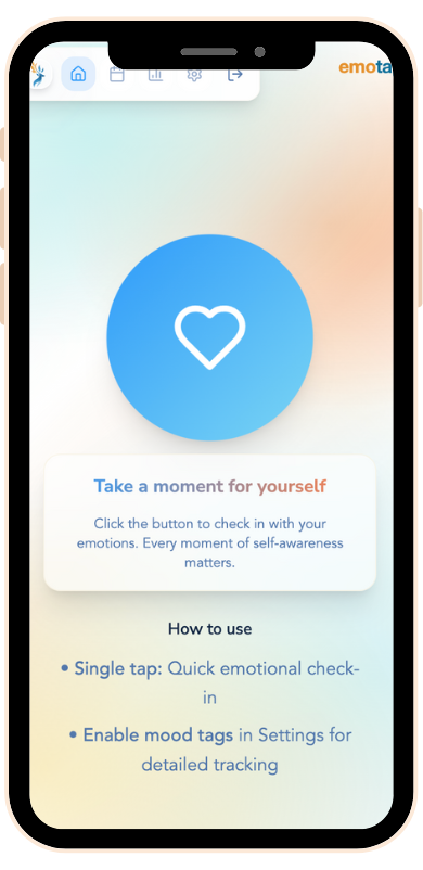 Emotap is designed to enhance your mood by learning from your behavior. It recognizes your best and worst days, anticipates upcoming mood changes, and helps you prepare for them.